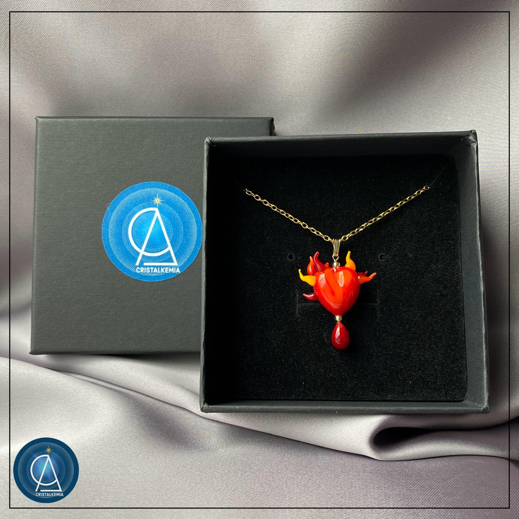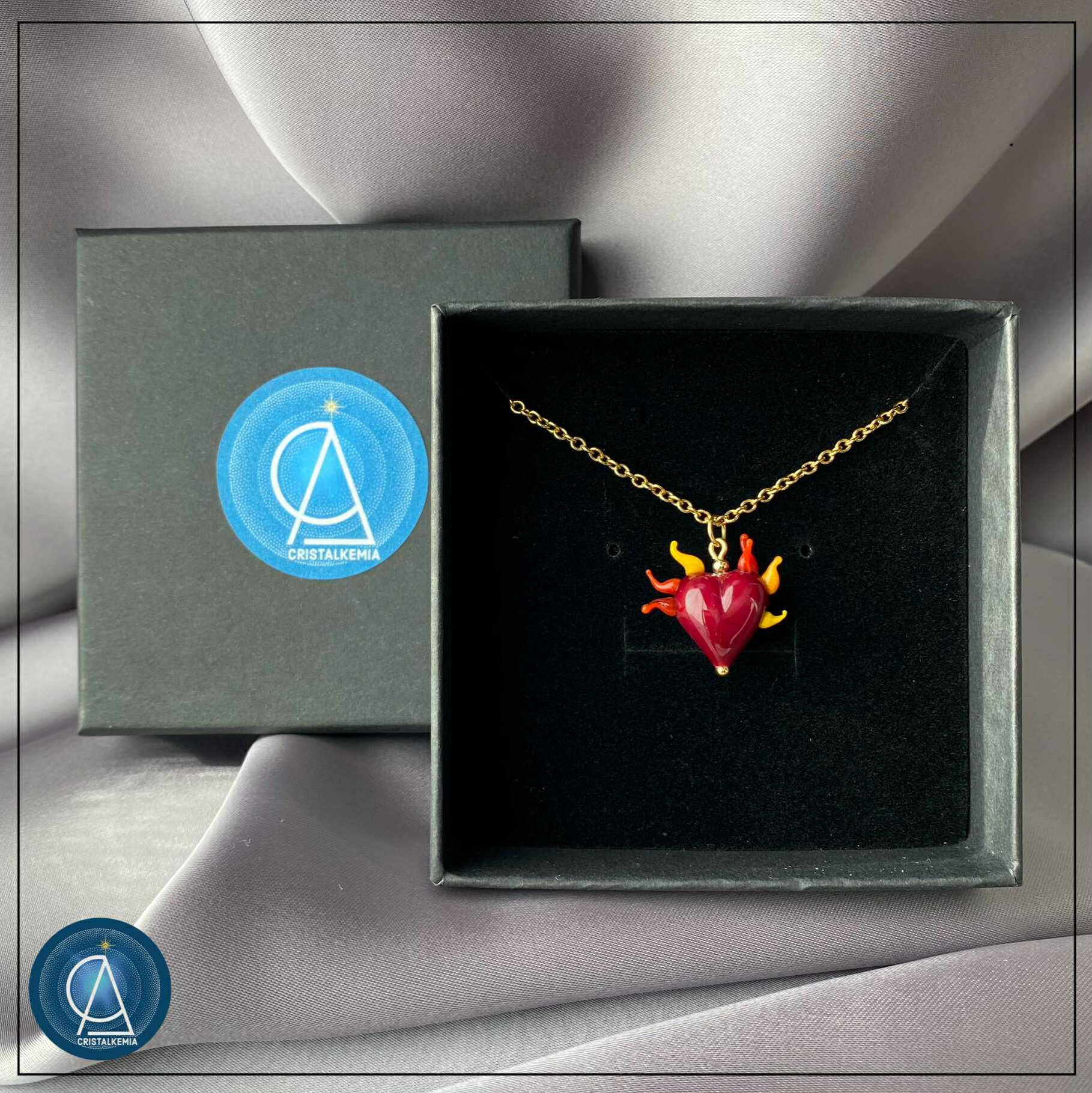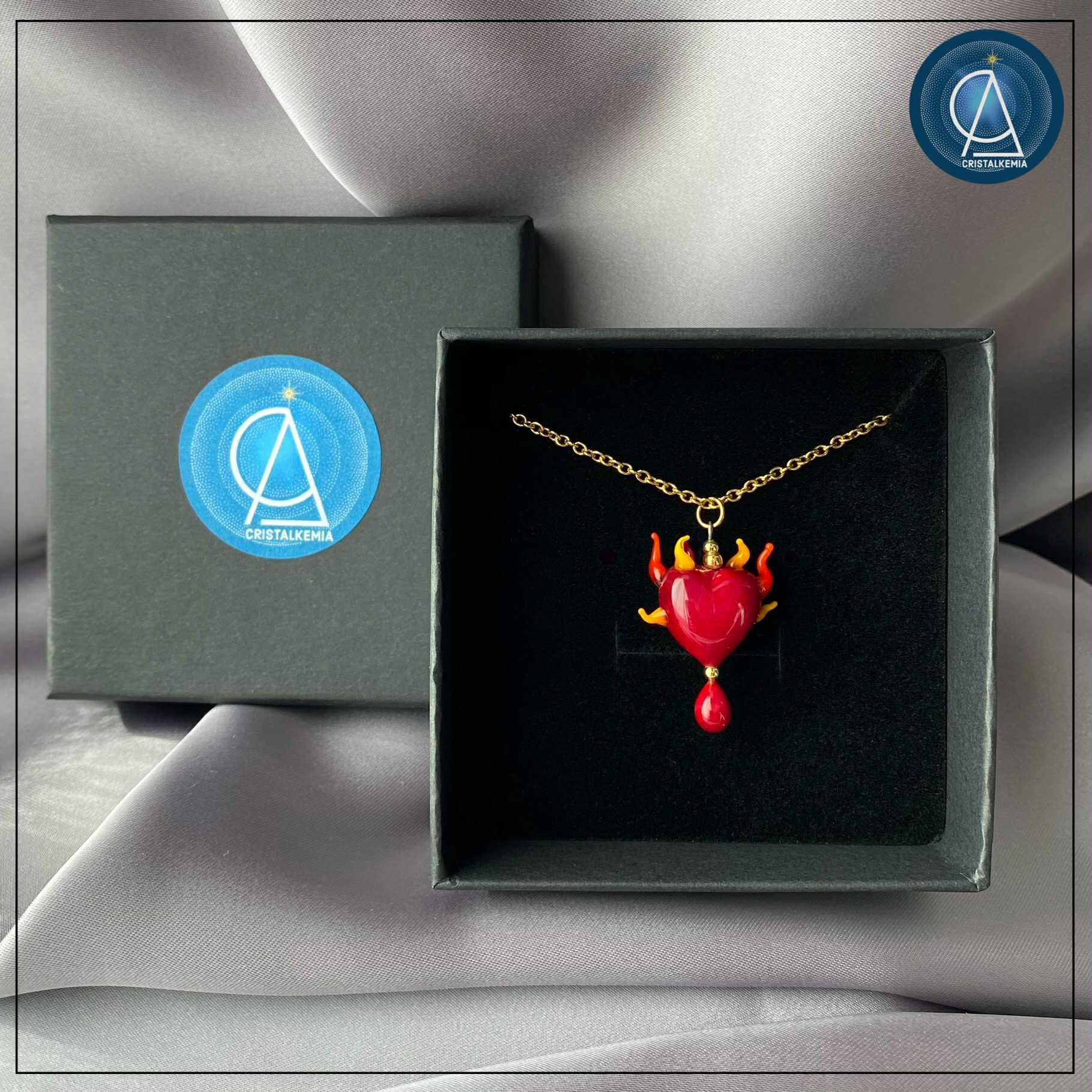 Filé à la flamme du chalumeau dans mon atelier en Bretagne, chaque cœur est unique tout en étant universel par son message.