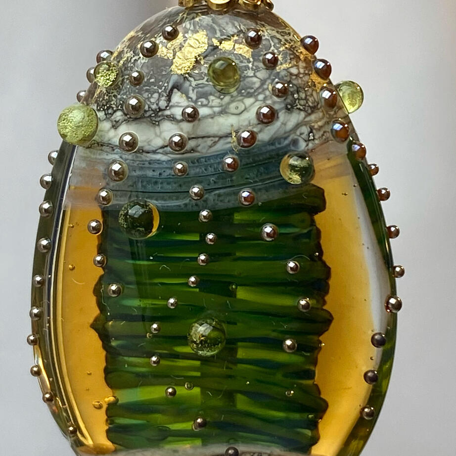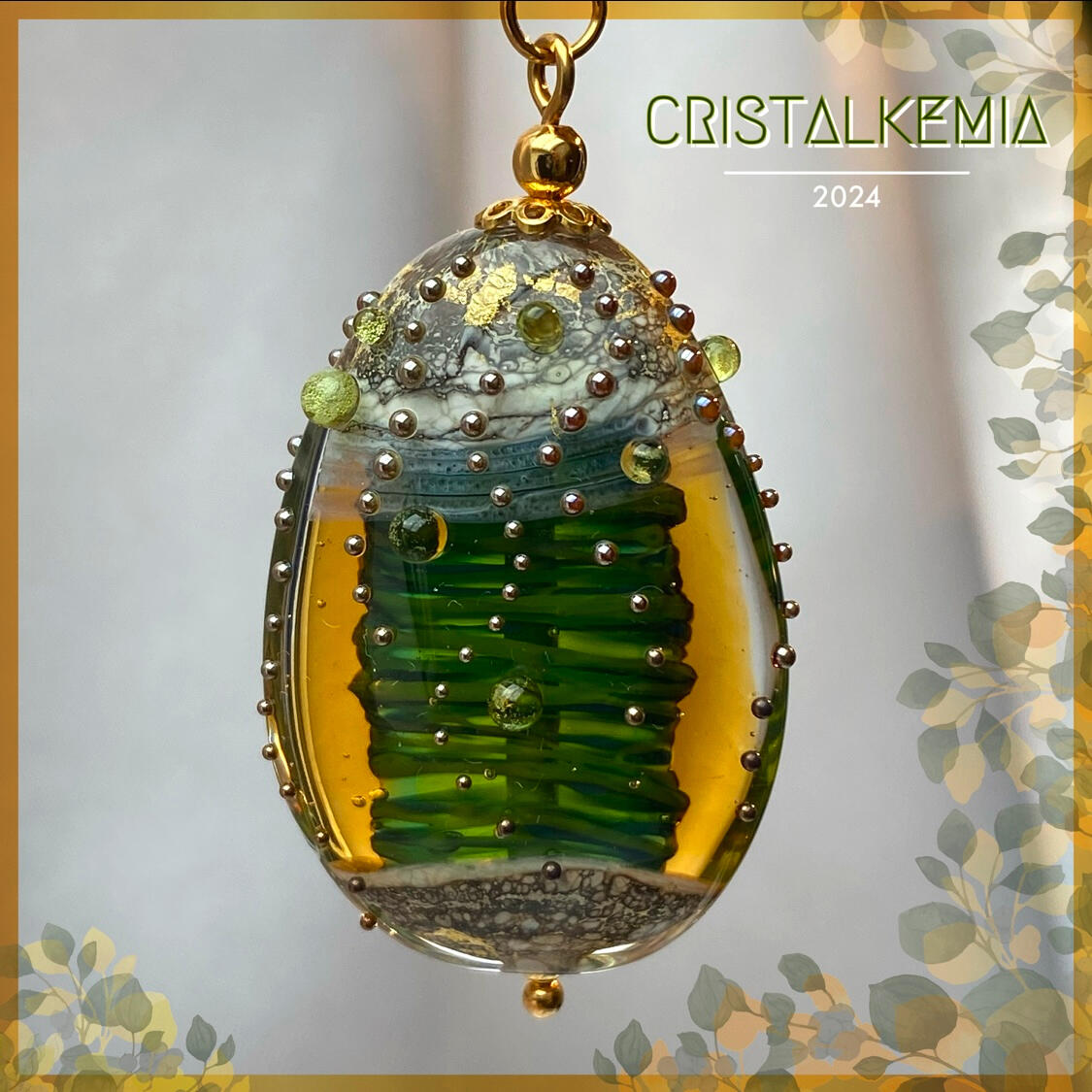 Verres utilisés : verts opaques, turquoise, bleu outremer, vert clair, ivoire, ambre, transparent, blanc, iris-orange.VIDÉO DE "VIJAYA" ICI
