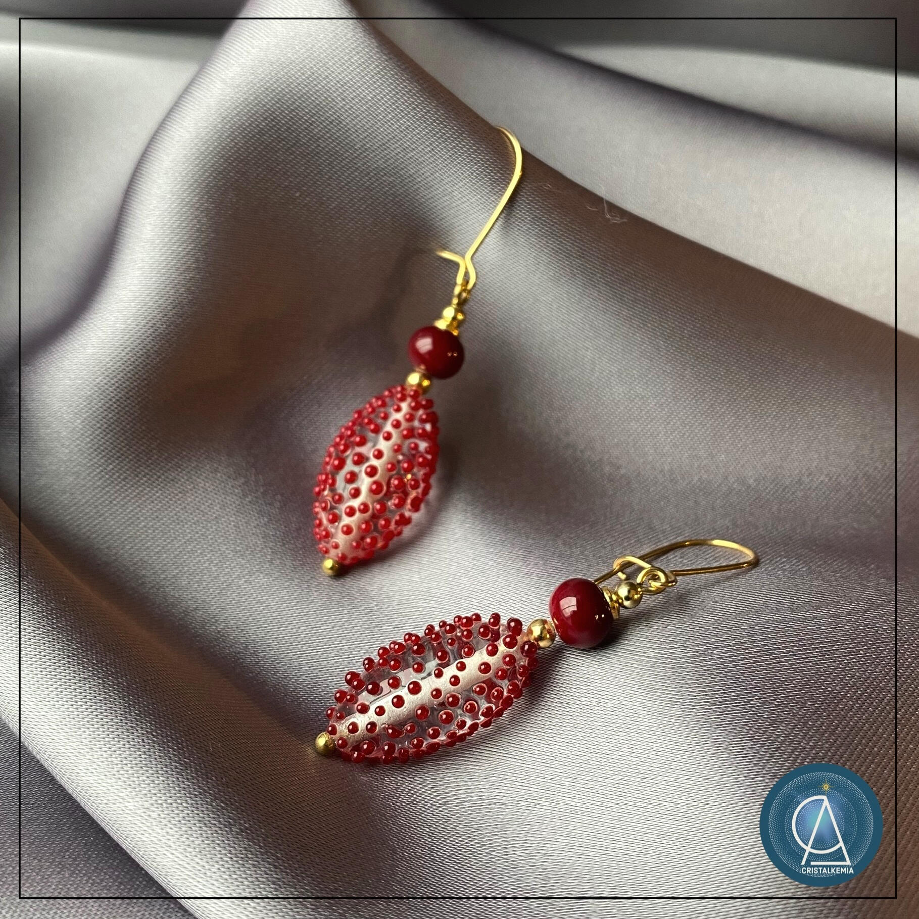 Apprêts de bijouterie en argent massif et verre de Murano filé sur tiges kanthal.